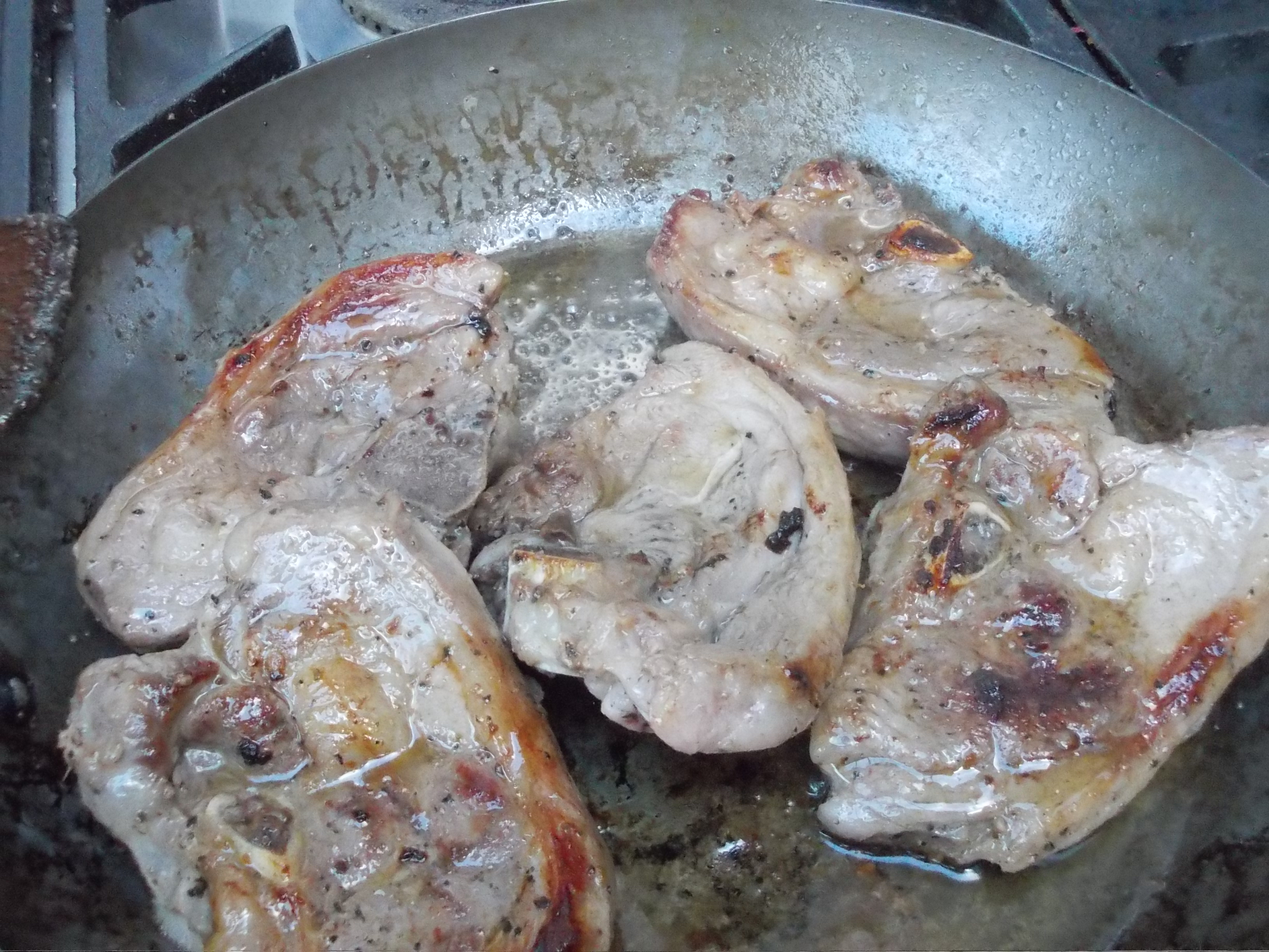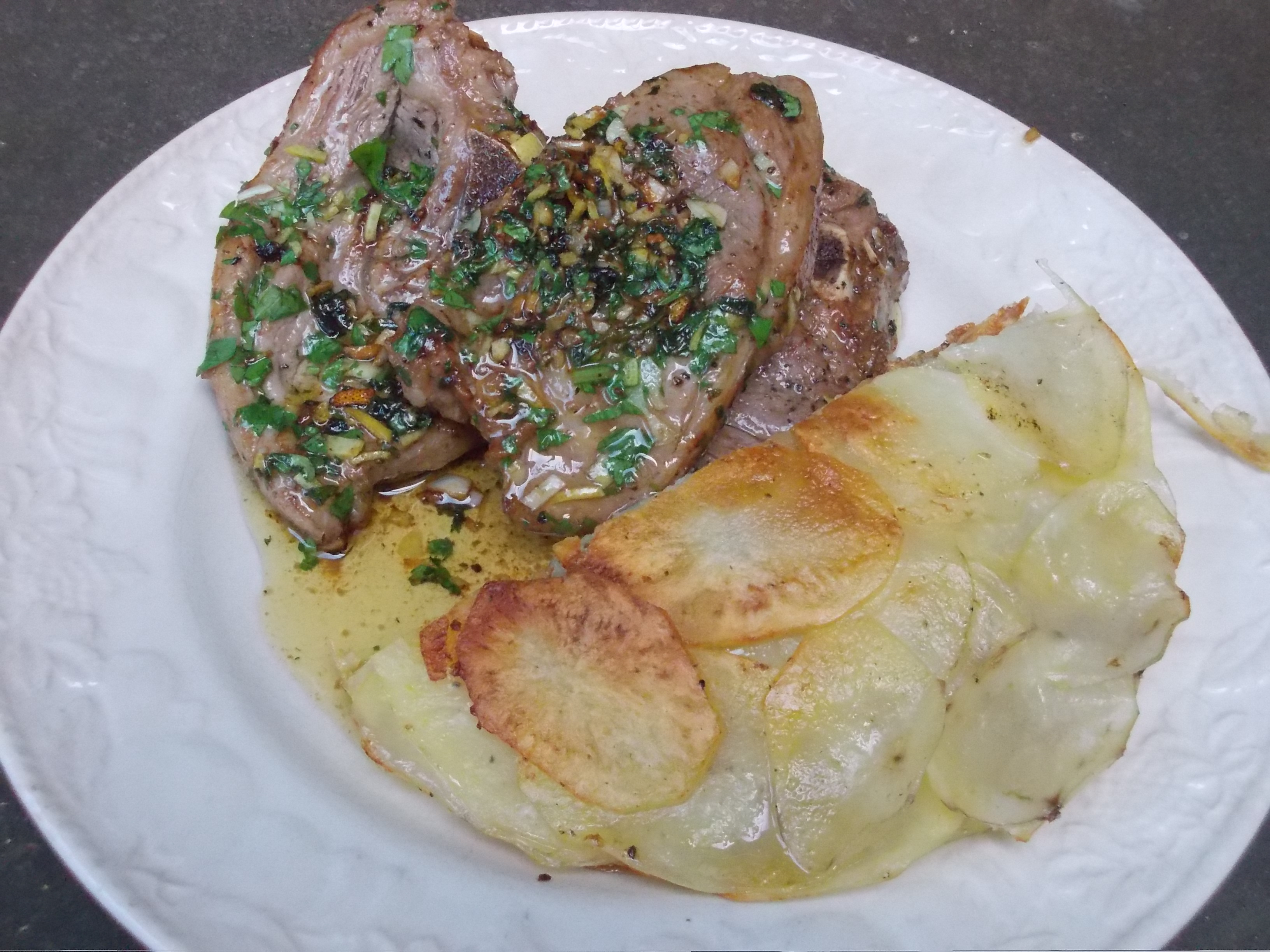 The lamb was fried off in olive oil having been seasoned well with salt and pepper. Just before serving I stirred in some finely chopped lemon peel, parsley and garlic.