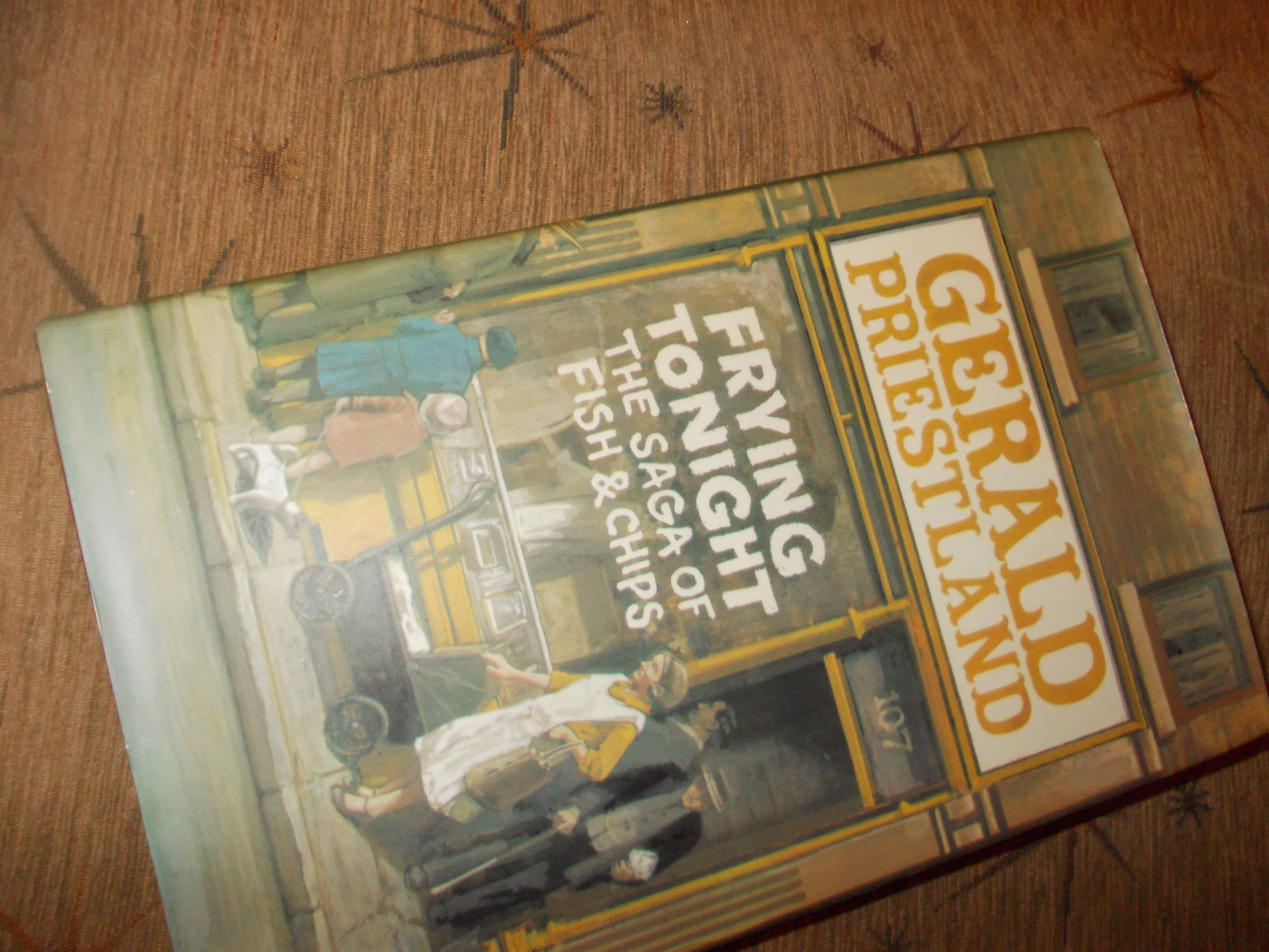 I was then taken by a book called Frying Tonight by Gerald Priestland. Seeing the name on the spine I was half hoping it might be a whole book of cooking around the theme of Carry On Screaming. I was only slightly disappointed to find that it was in The Saga of Fish & Chips, a history of the Friers Trade and our great Proletarian Finger Food published in 1972 with a great many black and white photos of people tucking into healthy looking platefuls of fish & chips. There is a slight folorn photo of a Mr Stratis of Myddleton Quality Fish Bar, Bowes Park, London tucking into a plate of his own wares. The final photo is of the original Harry Ramsden’s kitchen in 1972. I can remember going to the restaurant on a run out from Leeds 25 years ago and sitting on the tables outside to eat our Fish & Chips.