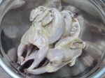 After half an hour or so the oven was on hot for the pasta bake. So I spread out the quail on a baking tray and put them in as well.