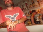 In another pan I heated some olive oil on a high heat and threw in the heads crushing them as best I could with a wooden spoon. As they seethed and spat in the heat I poured in a glass of the Pernod and flamed that off before adding the remaining cup full or so of the stock. That cooked through for five minutes and was then drained through a sieve into the tomato sauce.