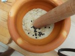 I bought 4 lbs of pork belly from Edge & Sons. They took out the bones for me. I crushed rock salt, soft brown sugar, juniper berries and bays leaves and smeared it over the meat. It is in the fridge downstairs. With a bit of care and attention during the week it should be ready Saturday morning.