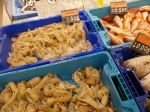 We then went to the supermarket which was substantially busier than it had been last time we were there. The highlight there was the fish counter. It overflowed across the aisles, the trays spilling over with fresh fish There were hake as thick as a man’s thigh and next to them a fish of similar size I had not seen before, they were a vivid red and angry looking. Someone ordered one and the girls behind the counter had to man handle it onto the scales it was so big the tail lopping out. I bought my boquerones and half a kilo of some strange looking flat prawns, in fact prawns that looked as if they had been hit square on and evenly with a heavy frying pan.