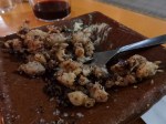 It was then onto a small carafe of red wine and a plate of chipirones with sumac and alioli. These were baby squid no more than an inch long fried whole.