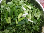 – the peppers went into the pan with the prawns and garlic and I broke them up with a wooden spoon.