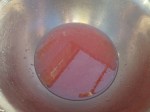 The jelly was made with Ruby Grapefruit from the grocers last night and rather to my surprise has worked. I made it with the juice of three grapefruit which I mixed with some sugar until it seemed to have right balance of sweet and sour, some chopped rosemary was stirred in along with some gelatine. It set overnight.