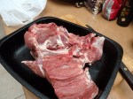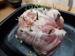 The lamb has been stuffed with a mixture of spinach, pinenuts and garlic and is now ready for roasting.
