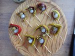– Aubergine, honey & pinenuts – these could have done without the pinenuts and theere was something astringent about the honey. It was also a long slice of aubergine with the skin still. So all in all not as good as it could be.