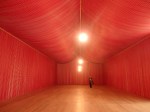 But most impressive were two large internal rooms each given over to its own work of art.One room had been hung with the bright red paper templates left after a poppy had been punched out of it. They were hung from the walls and in inverted arches from the ceiling and lit for four bare lightbulbs.