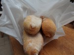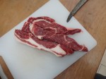 Along with the steak I bought some smoked streaky bacon, a fat free range chicken, dirty potatoes and carrots, two partridges and three long French style baguettes.